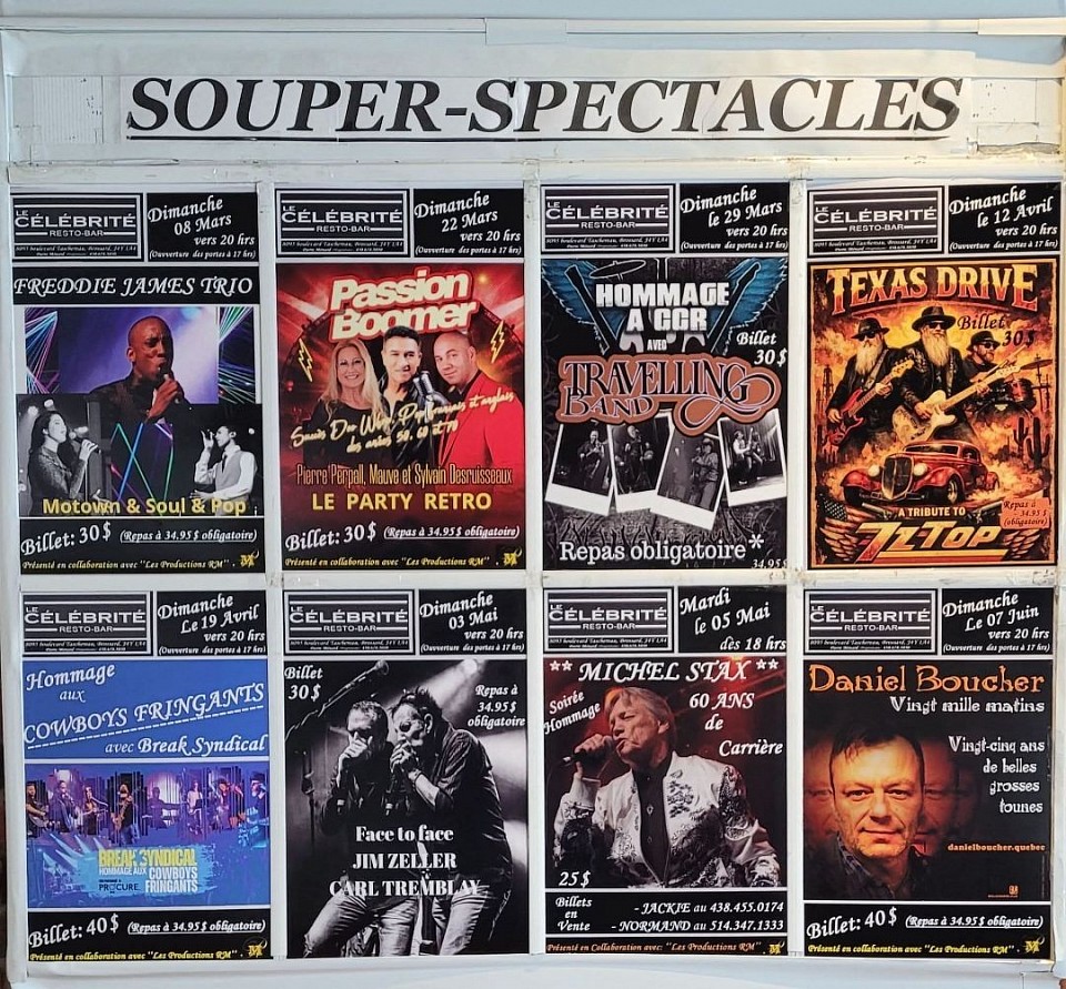 Nous offrons également une table d’hôte en soirée avec plus de 12 choix, allant du spaghetti à la sauce maison au steak-frites, le tout à des tarifs très compétitifs. Au Célébrité, vous êtes accueillis comme chez vous. Il n’est pas rare que le chef Pierrôt quitte sa cuisine pour venir saluer personnellement notre clientèle.