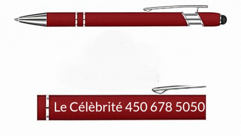 Stylo de qualité pour promouvoir les affaires : stylo personnalisé pour une écriture fluide, revêtement en caoutchouc, sensation agréable au toucher. De couleur rouge vin. Texte gravé au laser, évite les problèmes de décoloration.